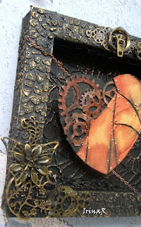 ОтветитьУдалитьFabulous steampunk heart, Irina! So much thought and engineering went into just making the heart, but nestled in it's grungy frame...ah, just perfect in every way! That zipper pull and rusty chain just melt my heart! I would love to know how you make your chain rusty.