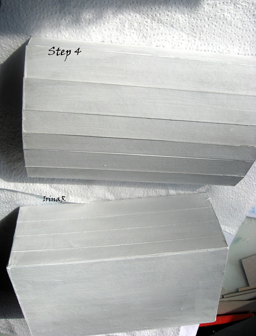 На боковые стенки коробки я также наклеила полоски (как досочки) тонкого картона плотностью около 200гр\м2.