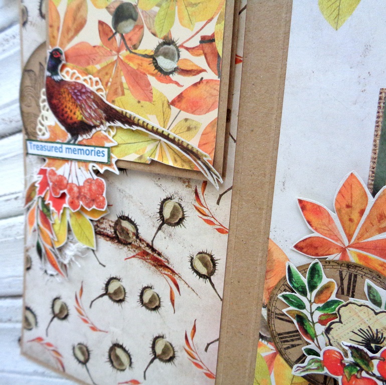 Несколько дней назад показывала обложку осеннего мини-альбома, а теперь покажу развороты с деталями декора и видео.
